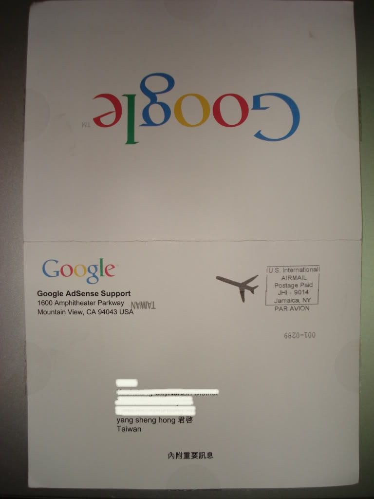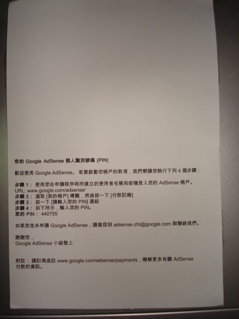2007/12/04 達到 google 寄送「個人識別號碼」(Personal Indentification